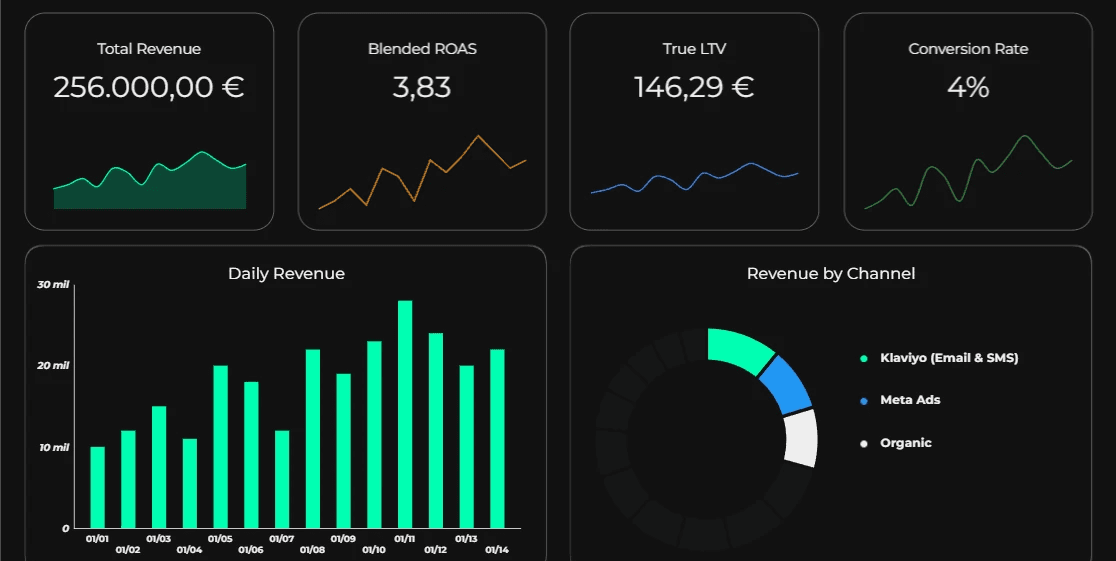 Total traceability connecting Klaviyo, Shopify, and your Ad Platforms.